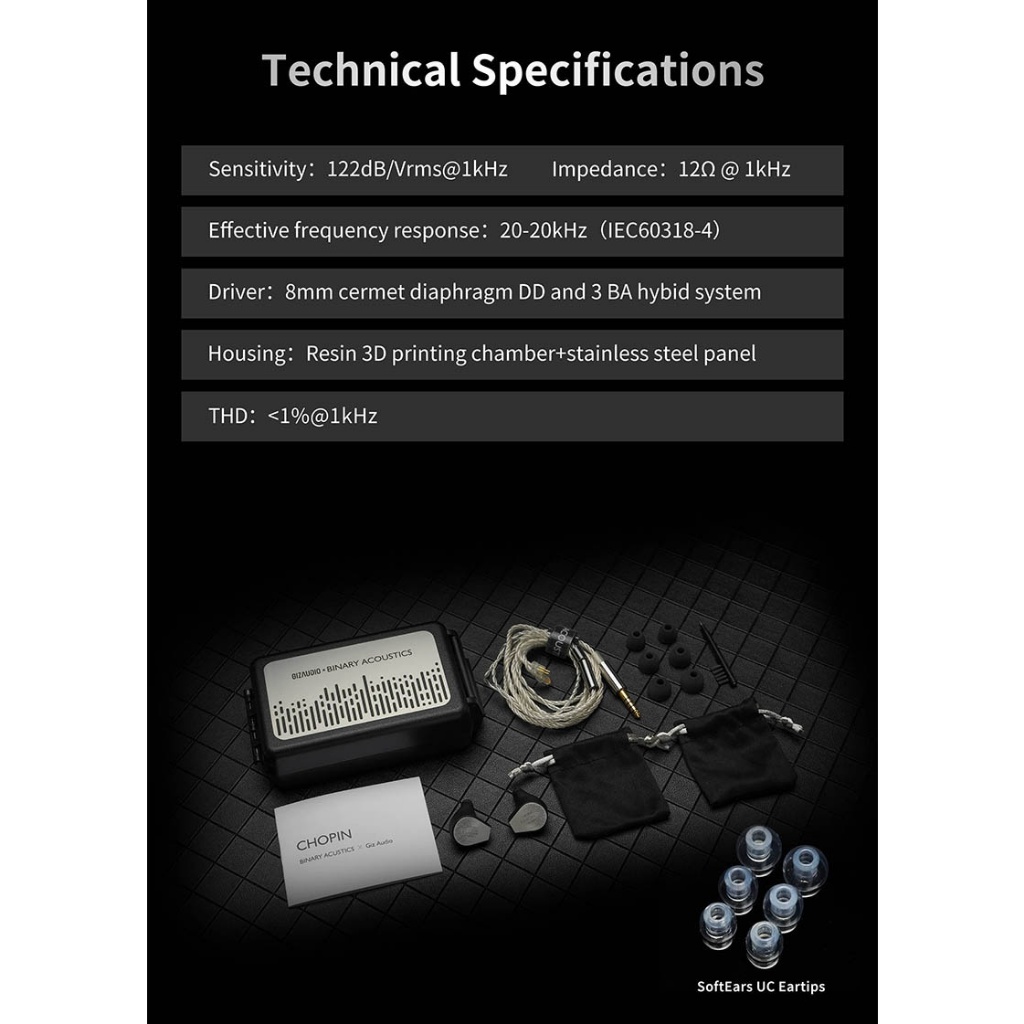 Binary x Gizaudio Chopin Hybrid Drivers 1 Dynamic + 3 Balanced Armature In-Ear Monitor Earphones