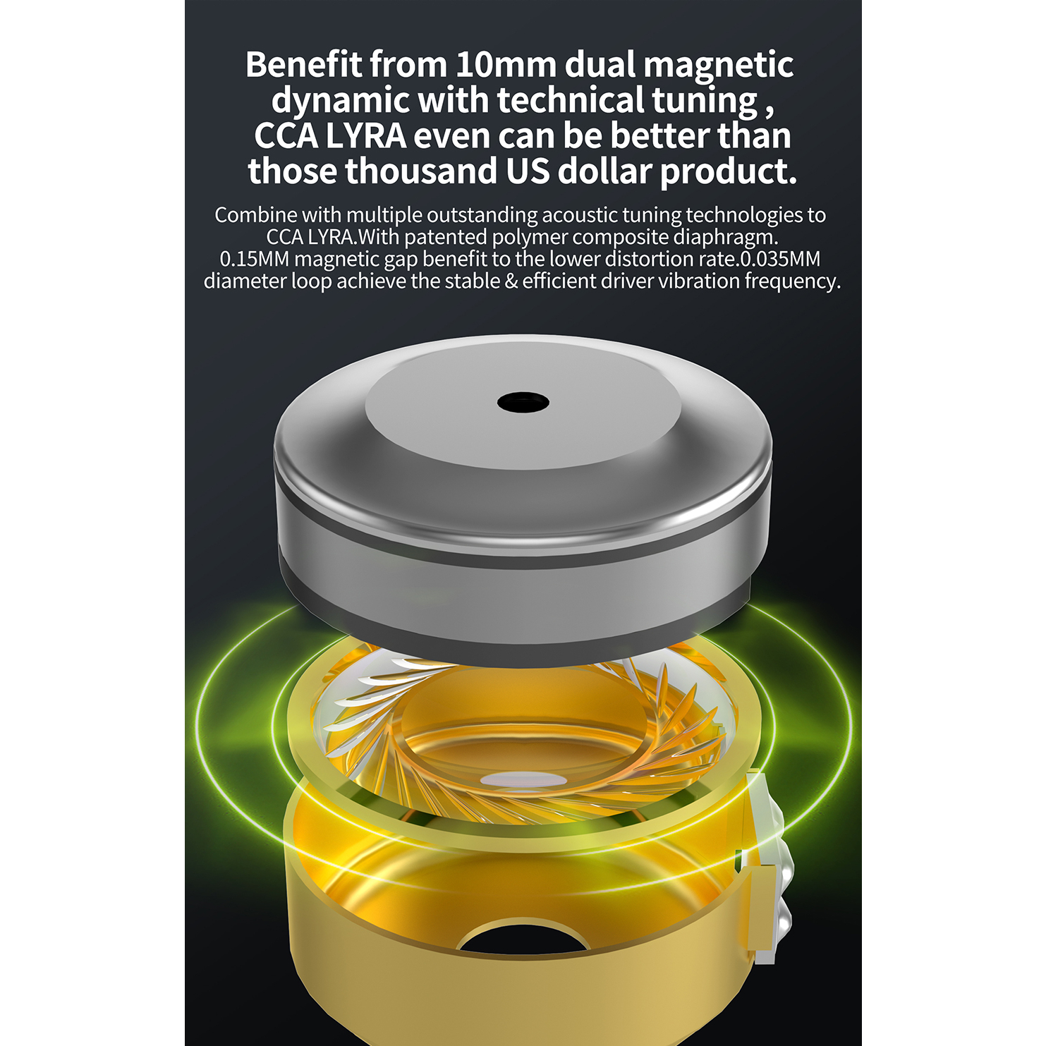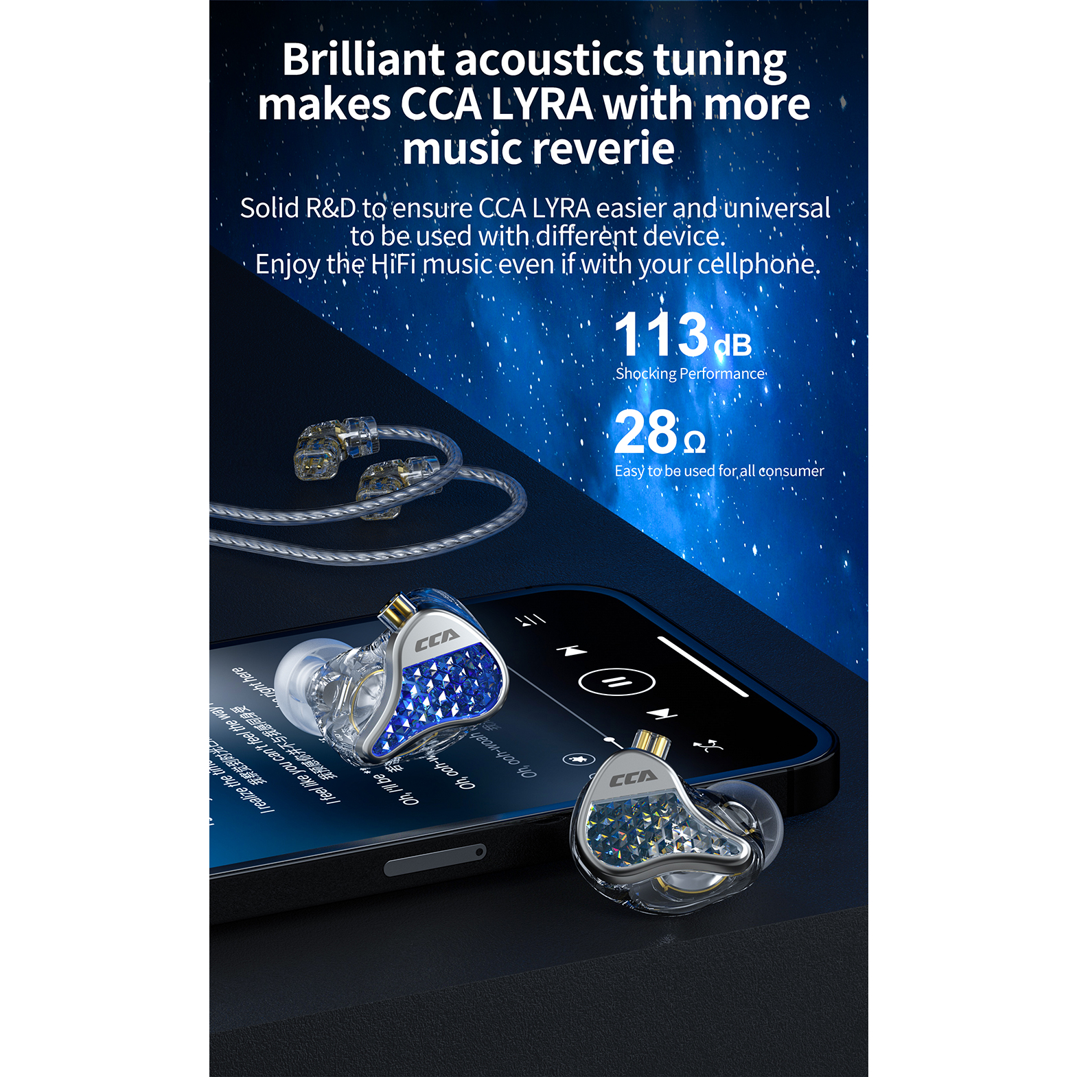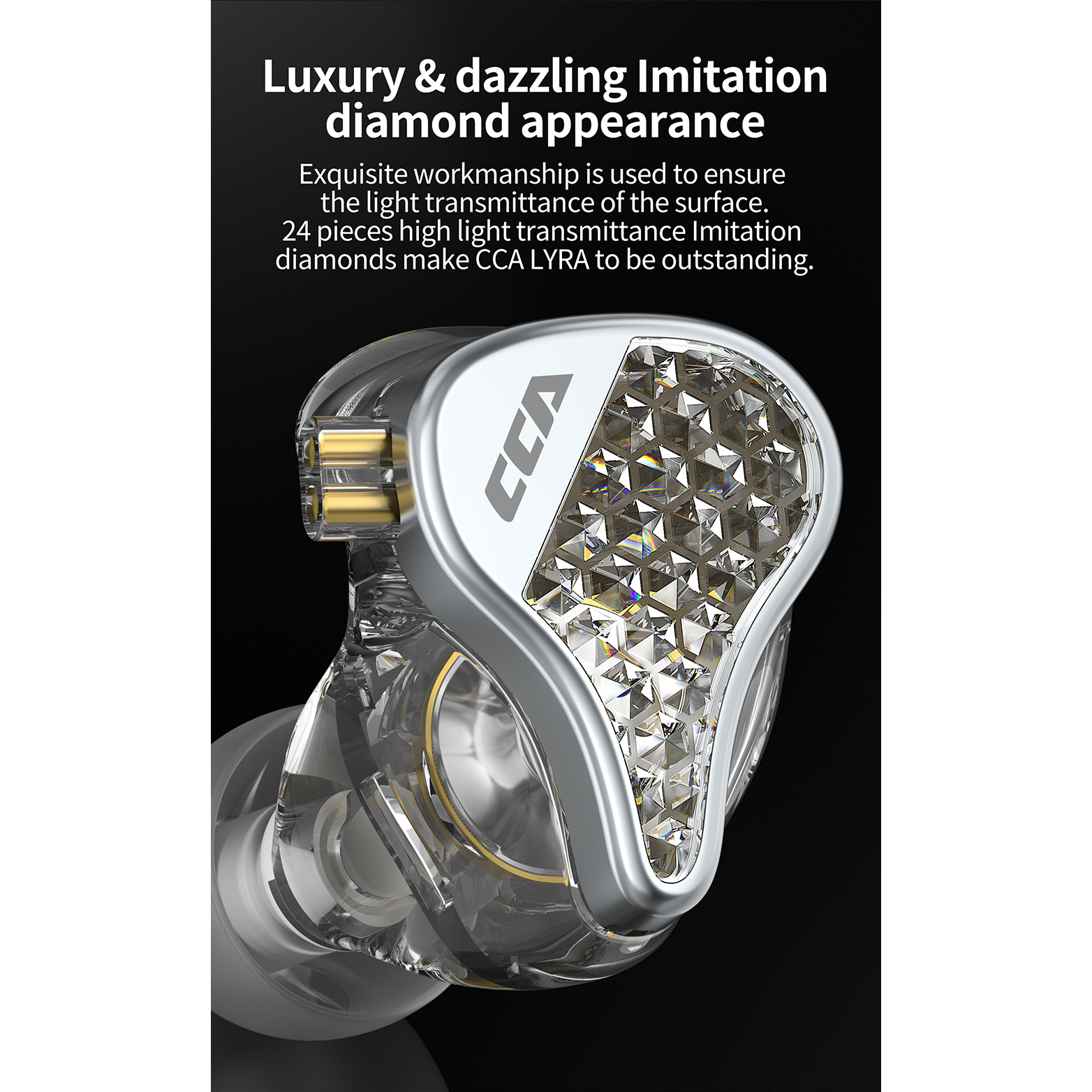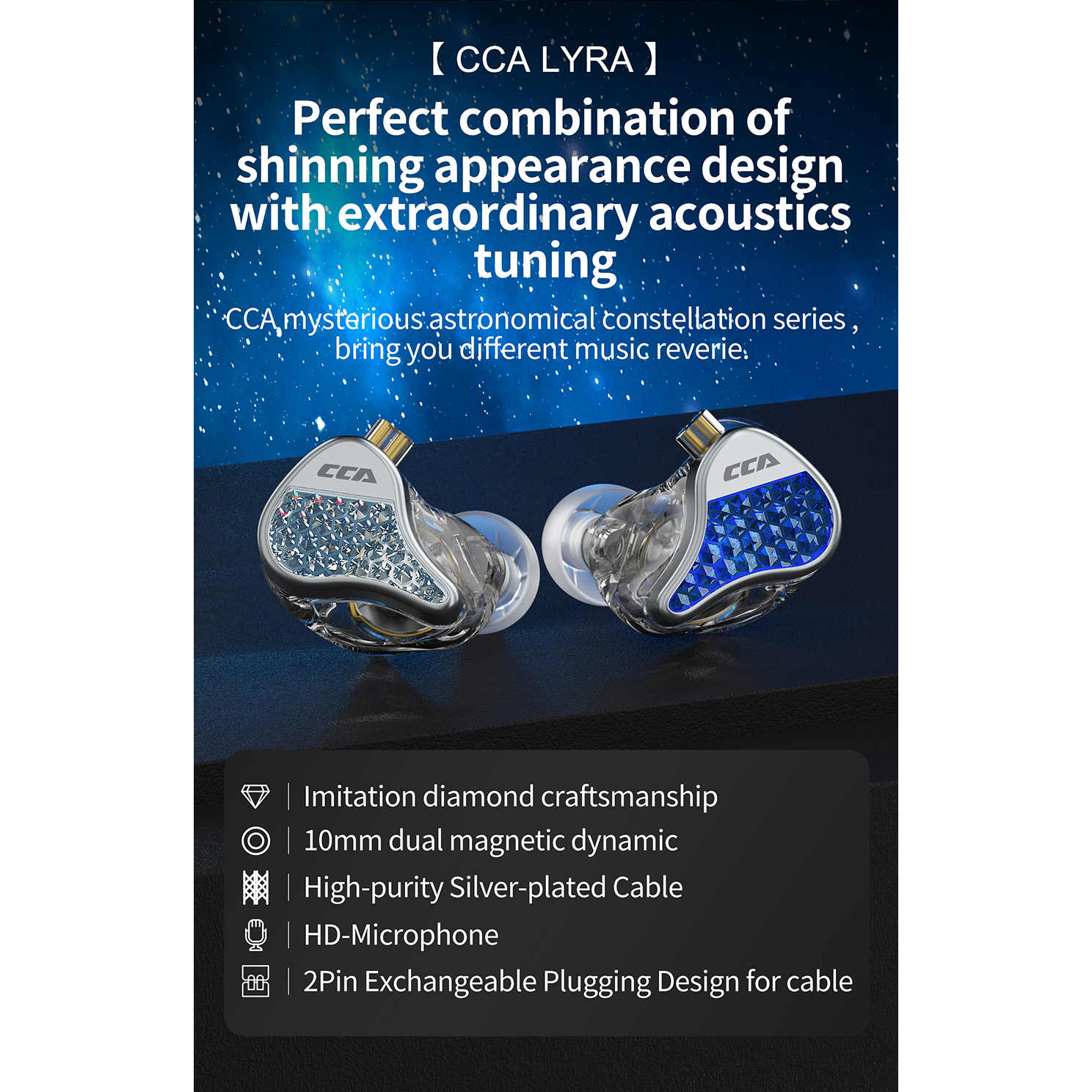 Experience the epitome of audio excellence with the CCA Lyra In-Ear Monitor Earphones. Equipped with 10mm dual magnetic dynamic drivers, these earphones deliver immersive sound quality that will transport you to another world. The diamond-like craftsmanship of the earphone shell exudes elegance and durability, while the ergonomic design ensures a comfortable and secure fit. Stay connected on the go with the high-definition microphone, and enjoy crystal-clear voice calls wherever you are.