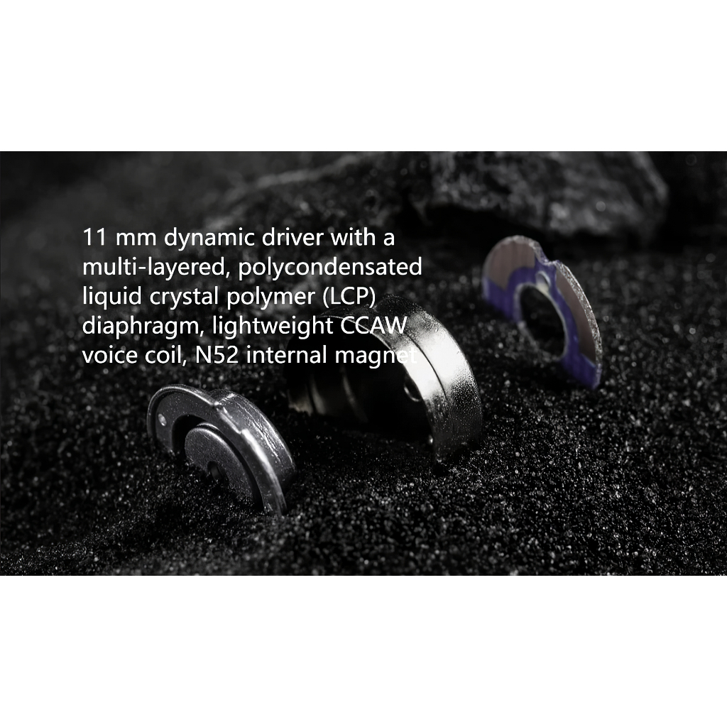 Experience exceptional sound quality with the newly-developed 11mm dynamic driver. The polycondensate LCP diaphragm ensures low distortion and high performance. The lightweight CCAW voice coil and Neodymium N52 magnets provide accurate and fast response for your music.