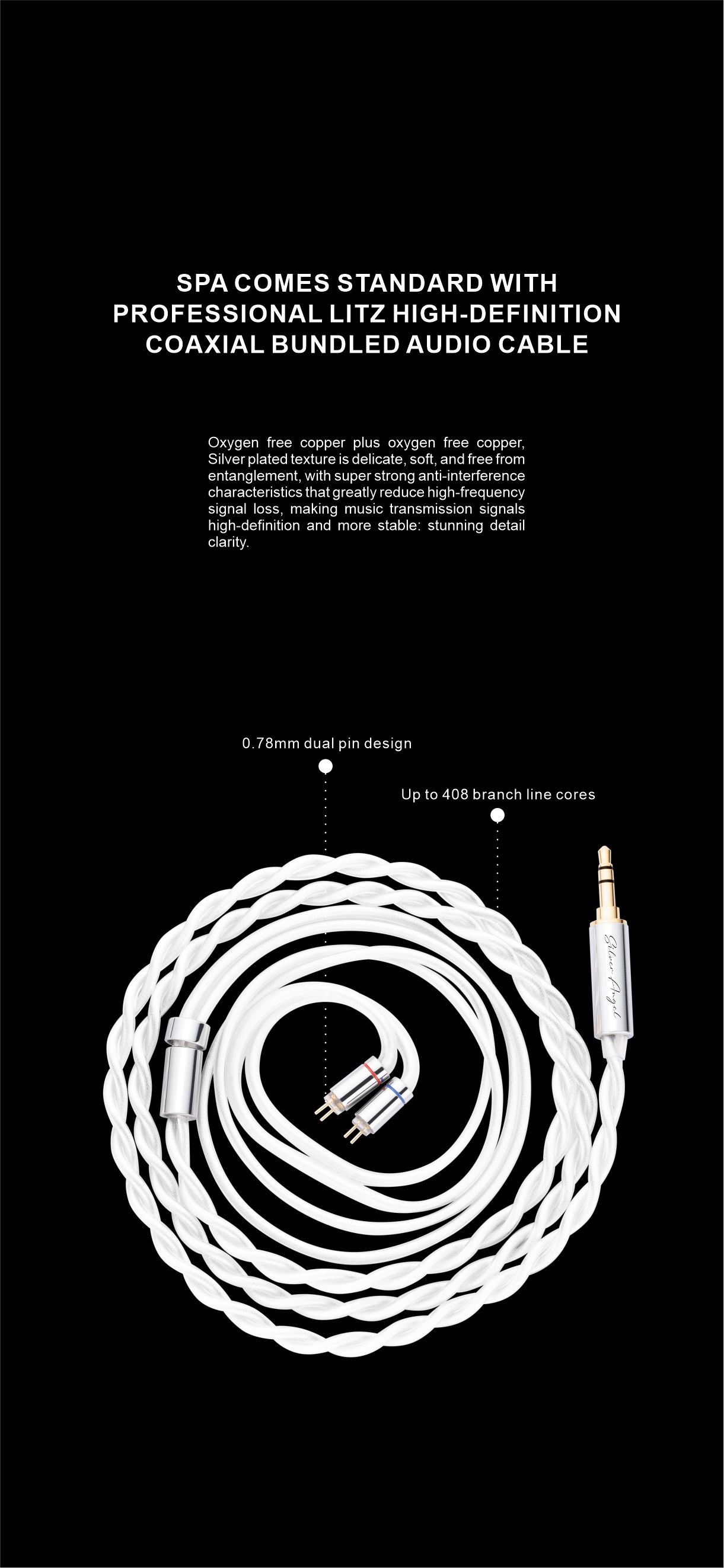 • HIGH-DEFINITION CABLE – The bundled Litz coaxial cable mixes oxygen-free copper and silver plating. It keeps the signal stable with less loss. The 0.78mm dual-pin design also makes replacement and upgrades simple.