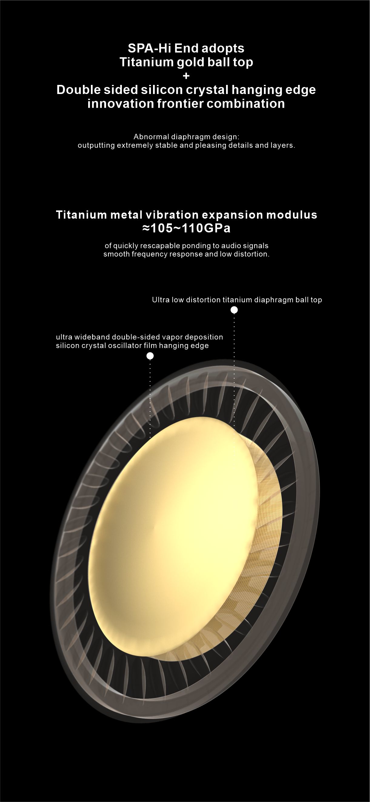 • DUAL MAGNETIC ENGINE – Equipped with N52 high-power magnets, the SPA Hi End has Tesla-level force for better dynamics. It drives sound with energy while keeping details sharp. Music feels more alive and spacious.