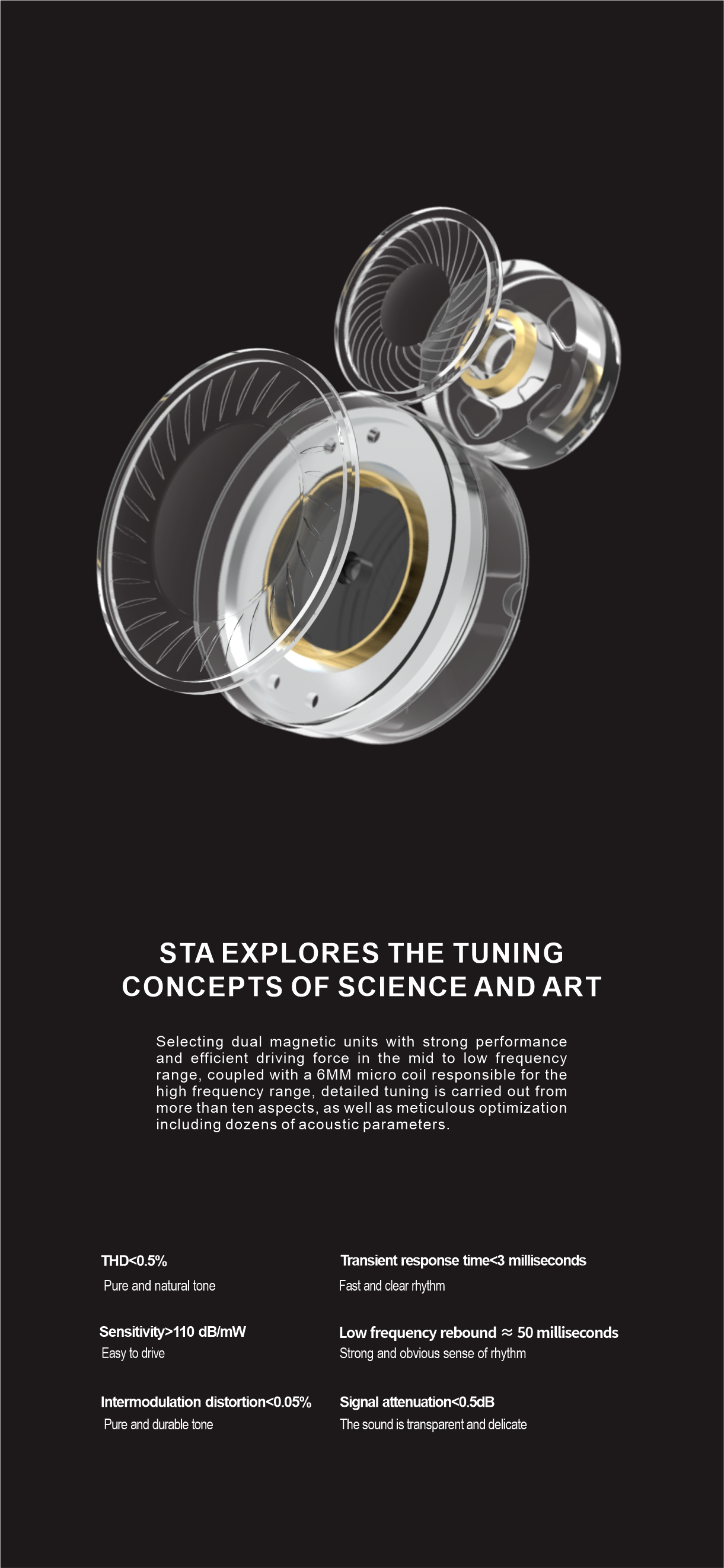• DUAL DRIVER POWER – The STA Hi End uses a 10mm and 6mm driver working together. The big driver handles the bass and mids while the small one brings out the highs. This mix makes your music sound wide and full.
