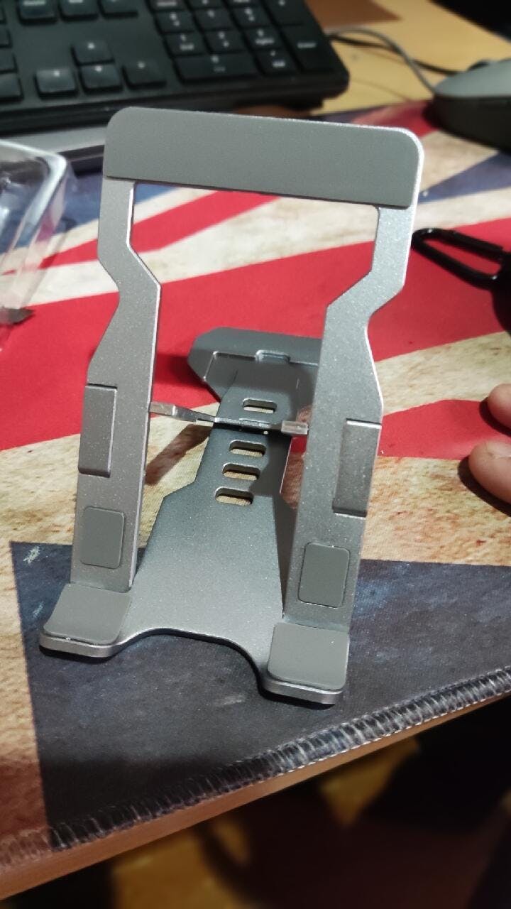 Elevate your mobile experience with the Tic Tech Toe PHS2 Mobile Phone Stand. Crafted from full aluminum for lasting durability, it boasts a sleek, smooth edge finish that adds an elegant touch to your setup. Its minimalist design doesn't clutter your space, making it perfect for any setting.The ultra-thin, foldable design ensures it slips easily into your bag or pocket. With three angle adjustments, you can find the perfect viewing angle for watching videos, making video calls, or reading. This stand accommodates both portrait and landscape orientations and even lets you charge your phone while it's propped up. It's a universal fit for all phone sizes, and the rubber contact points prevent any scratches. Plus, the rubber bottom padding keeps it securely in place on any surface.