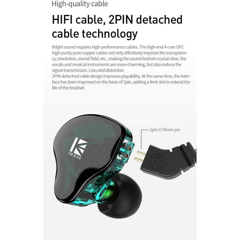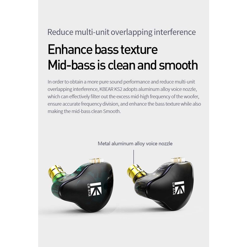 KBEAR KB EAR KS2 Hybrid BA+DD Dual Driver IEM Earphones with Mic