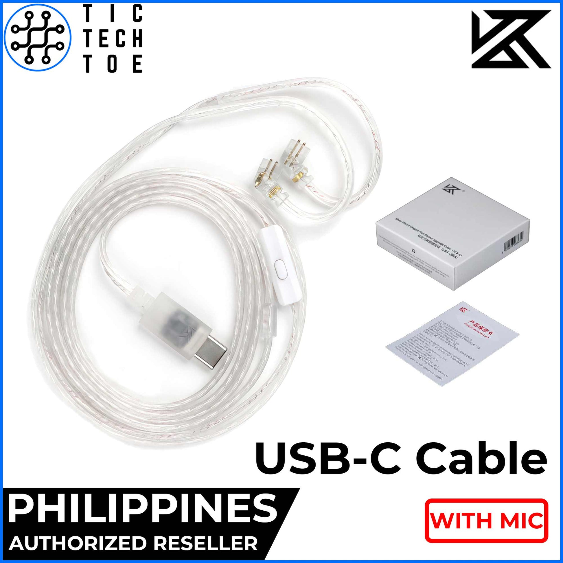KZ USB-C Silver Plated Upgrade Cable Oxygen-Free IEM with Microphone and Control Earphone SPC Wire