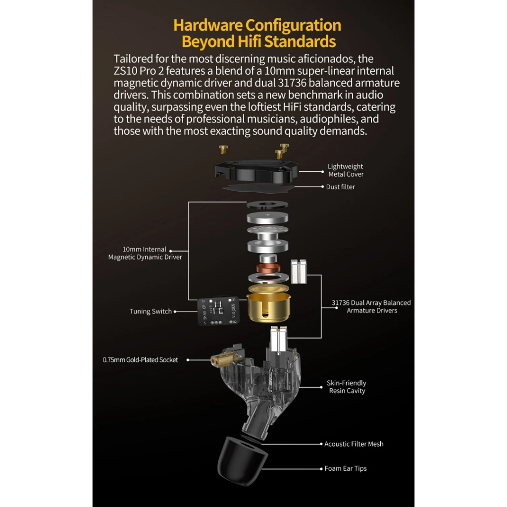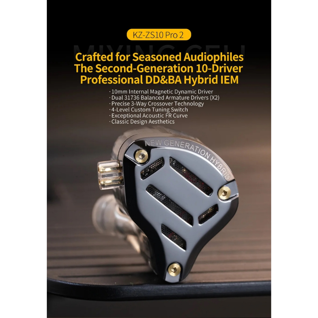 Introducing the KZ ZS10 PRO 2 In-Ear Monitor Earphones, the highly anticipated second generation of the widely praised ZS10 Pro series. These earphones redefine audio excellence with their hybrid triple driver setup, versatile tuning, and powerful yet controlled bass. Ideal for audiophiles and musicians, they also feature a newly designed 4-level custom tuning switch for personalized sound adjustments without needing a software equalizer.