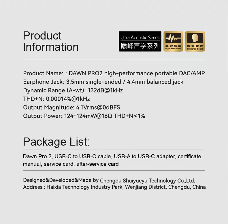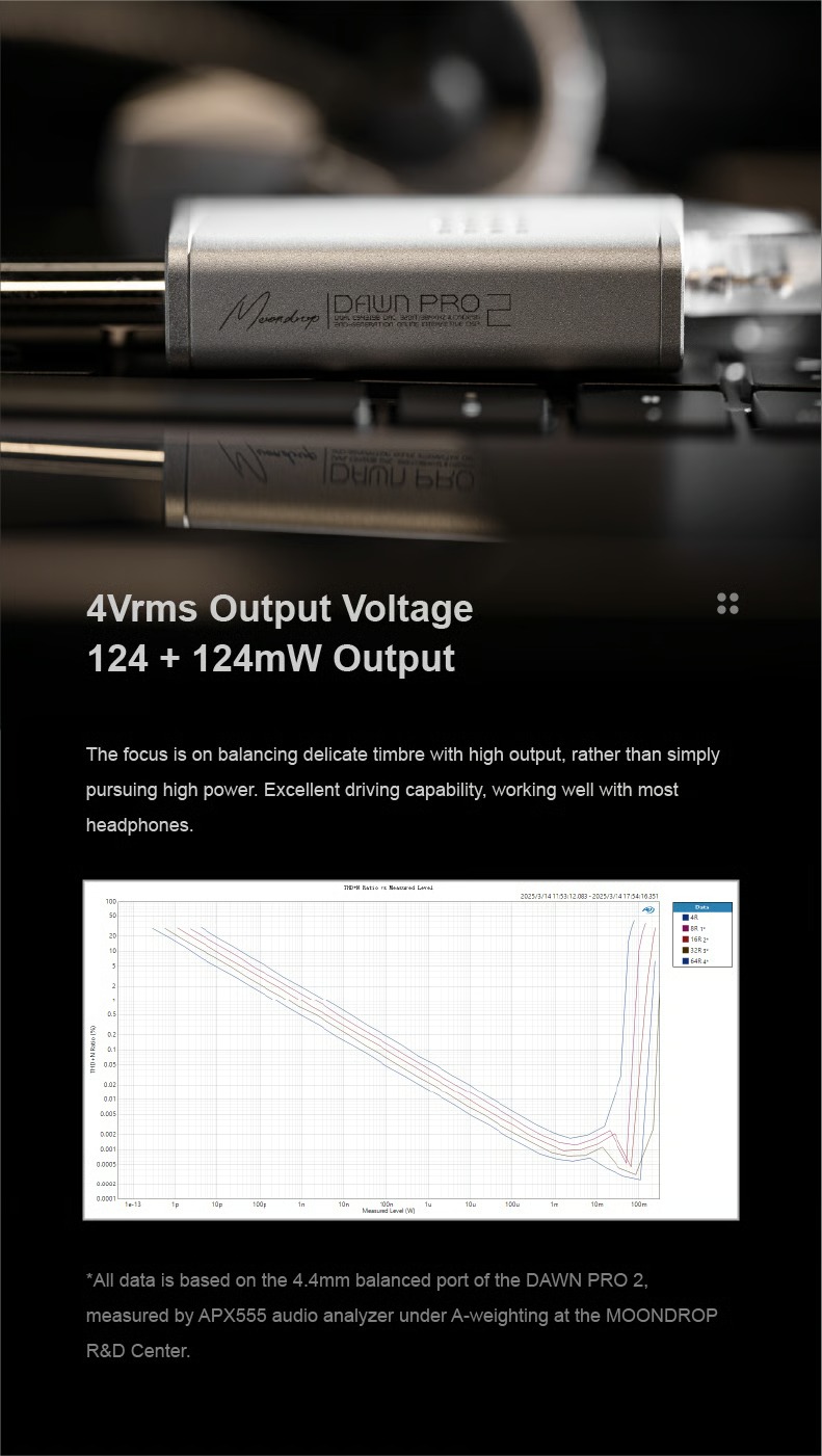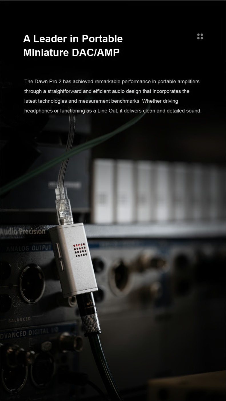 • BUILT FOR REAL HI-FI PERFORMANCE – Boasting a 132dB dynamic range and distortion as low as 0.00014%, the Dawn Pro 2 delivers breathtaking detail. Its 4Vrms balanced output gives every headphone the power and control it needs. Quiet moments stay quiet — and music feels alive.