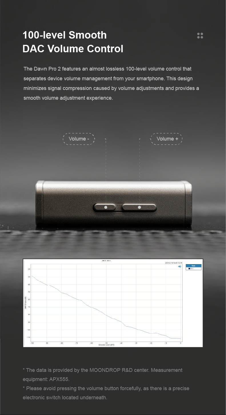 • PRECISE VOLUME, ZERO LOSS – Instead of relying on phone volume, it uses a 100-level independent DAC control. This prevents compression and keeps the sound smooth and dynamic. You can fine-tune every step without sacrificing quality.