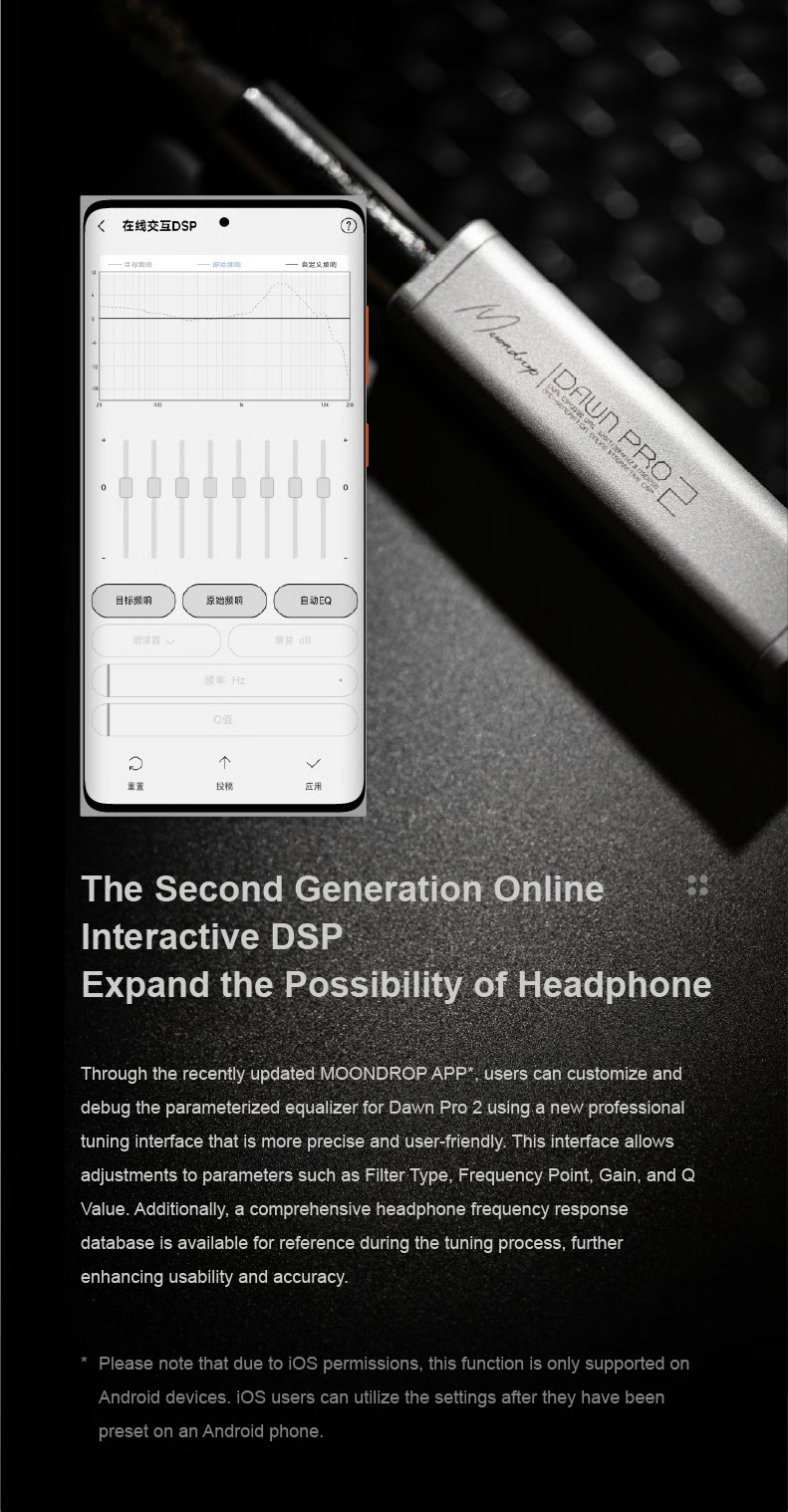 • SMART DSP TUNING MADE EASY – With Moondrop’s 2nd-generation DSP, you can shape your sound using the Moondrop App or web interface. Adjust EQ, gain, and filters, or download community-made presets. It’s like having a sound engineer in your pocket.
