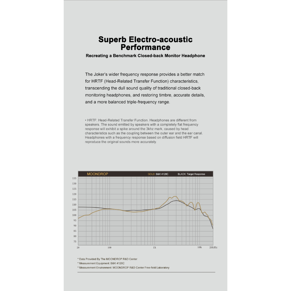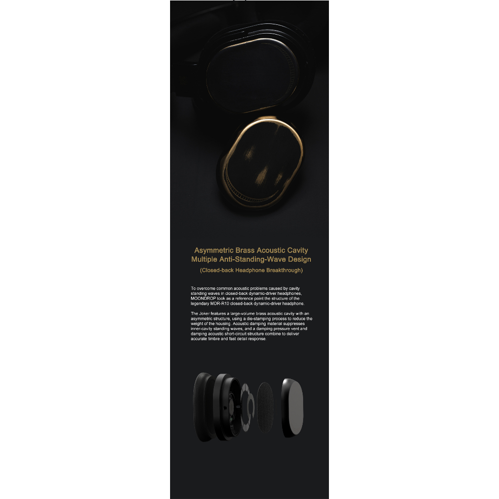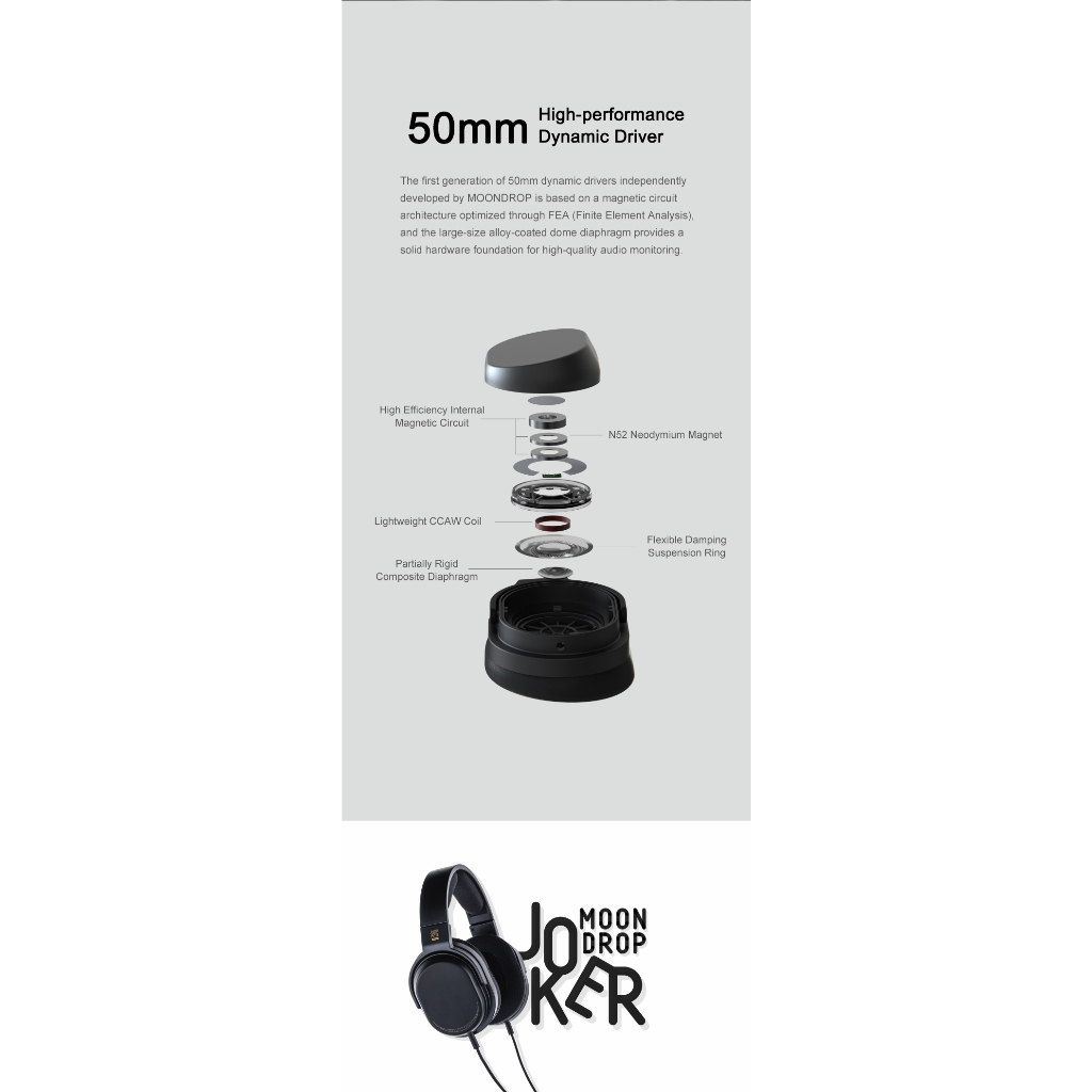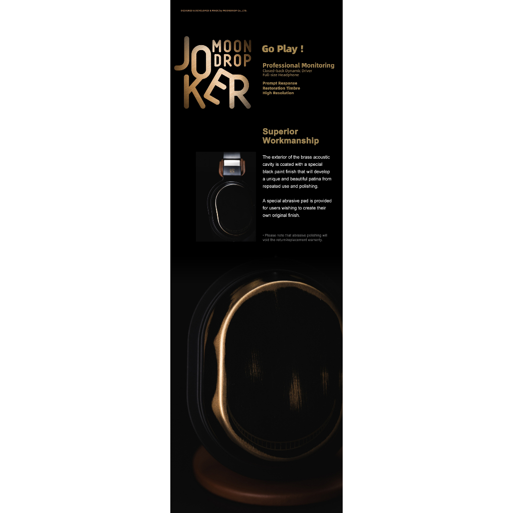 Introducing the Moondrop Joker - the headphones every young professional audiophile has been dreaming of. With a closed-back design and high-performance 50mm dynamic drivers, these cans deliver sound quality that rivals headphones twice the price. The secret sauce? A large-volume brass acoustic cavity that elevates your audio experience to new heights. Immerse yourself in incredible detail and a phenomenal soundstage, with lively sound featuring crisp highs and tight bass. Whether you're editing your latest project or jamming to your favorite tracks, the Moondrop Joker's got you covered. And with dual 3.5mm headphone jacks for easy cable replacement or upgrades, these headphones are a solid investment. Plus, the quick-release leather earpads ensure comfort during those extended listening sessions. Elevate your audio game with the Moondrop Joker - where professional sound meets affordability.