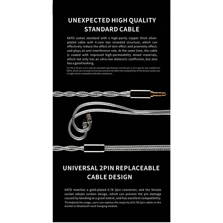PREMIUM QUALITY CABLE - Don't forget the cable, as Moondrop made sure that it is also worthy to be used with the KATO. Using thick silver-plated copper cable and gold-plated connectors, this provides a smooth signal transmission, ensuring a pure sound output for you. It also comes standard with 0.78mm 2-pin connector, allowing for easy upgrades and replacements.