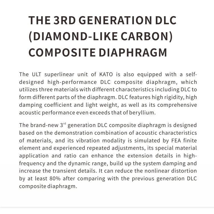BLEEDING EDGE EARPHONE TECH - The Moondrop KATO is equipped with the 3rd-generation DLC diaphragm coil made with three materials to optimize rigidity, damping, and weight. This surpasses the performance of beryllium diaphragms, and delivers unmatched audio reproduction in conjunction with the 10mm ULT dynamic drivers.