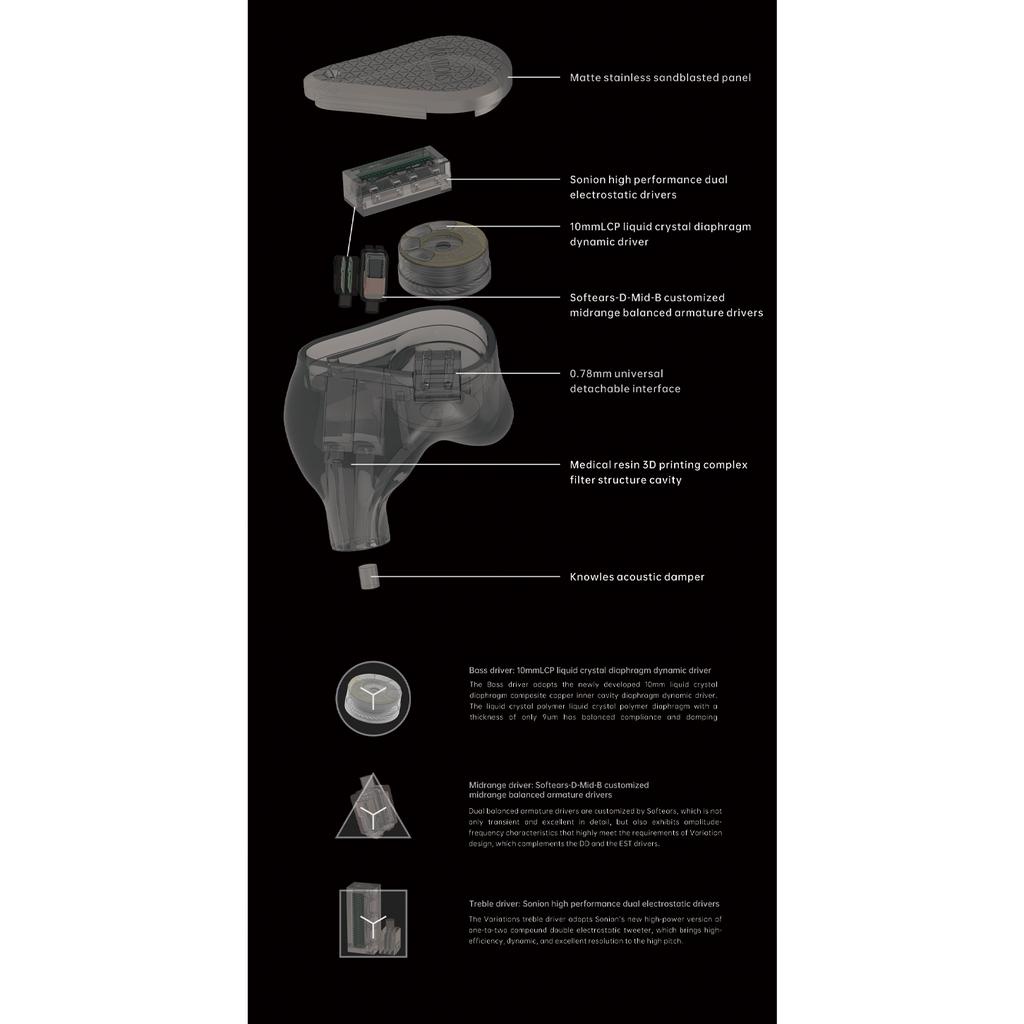 Moondrop Variations Tribrid Electrostatic Driver IEM Earphones with Interchangeable Cable