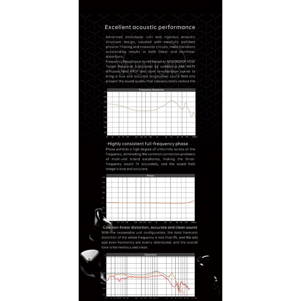 Immerse yourself in an extraordinary audio experience with the Moondrop Variations, a tribrid IEM that redefines sonic excellence. From its meticulous attention to detail and high-quality material selection to its captivating sound quality, the Variations will leave you spellbound. With its engaging sound signature, abundant details, and premium build, these IEMs push the boundaries of audio perfection. Prepare to be captivated by the Variations' remarkable sound reproduction, and discover why many enthusiasts consider them to be the pinnacle of earphone performance—a true gem that surpasses all others and sets a new standard in audio enjoyment.