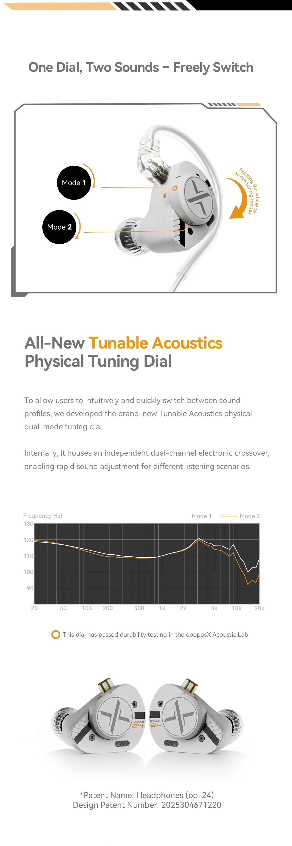• TWO SOUNDS, ONE SWITCH – The OP.24’s Tunable Acoustics Dial lets you change sound profiles in seconds. Whether you want richer bass or brighter treble, adjust it with a simple twist. Enjoy music your way without needing apps or settings.