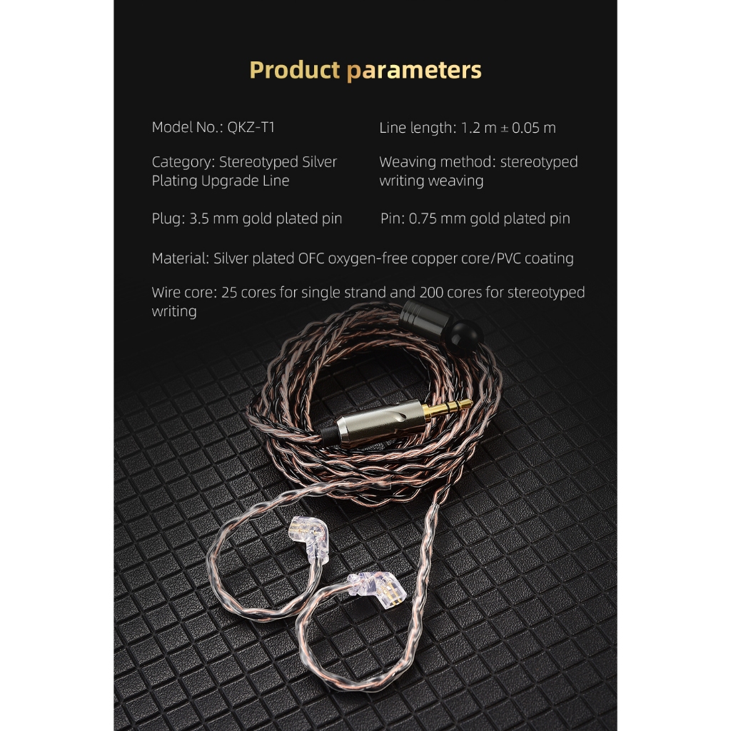 QKZ T1 200 Core 8 Strand Silver Plated Braided Earphone IEM Upgrade Replacement Cable