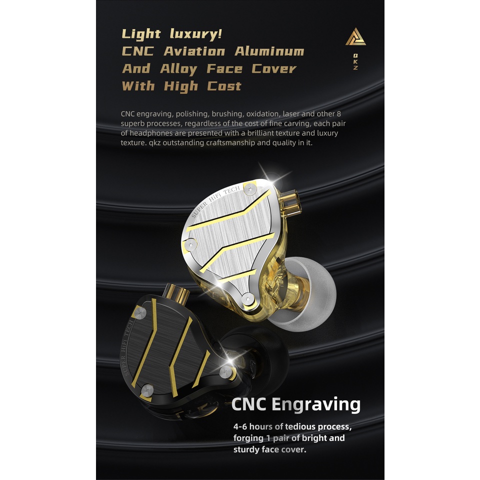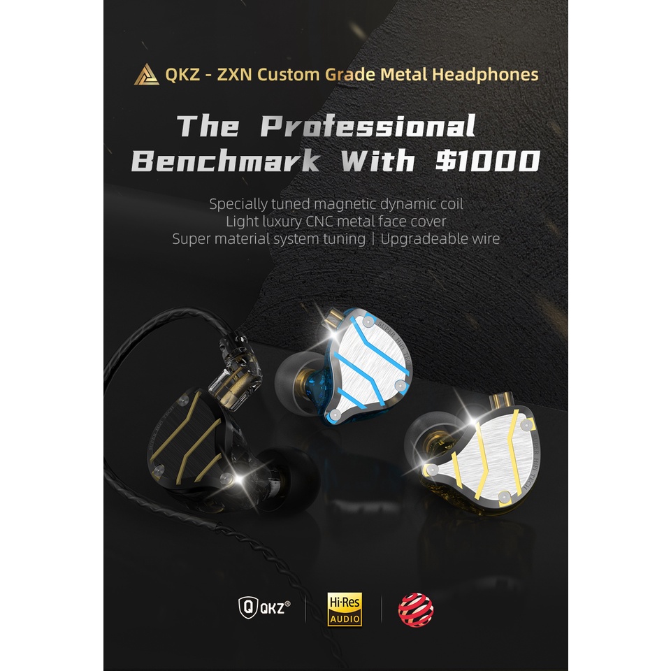 QKZ ZXN Metal HiFi 5 Dynamic + Balanced Hybrid Audio Driver IEM Earphones with Mic