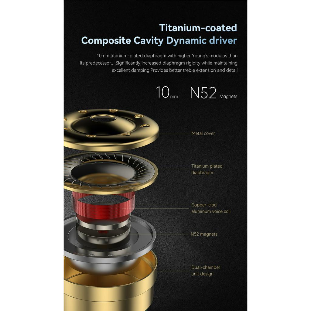 TRN MT3 Titanium Plated Dynamic Driver Zinc Alloy Shell Detachable Cable Earbuds with Mic