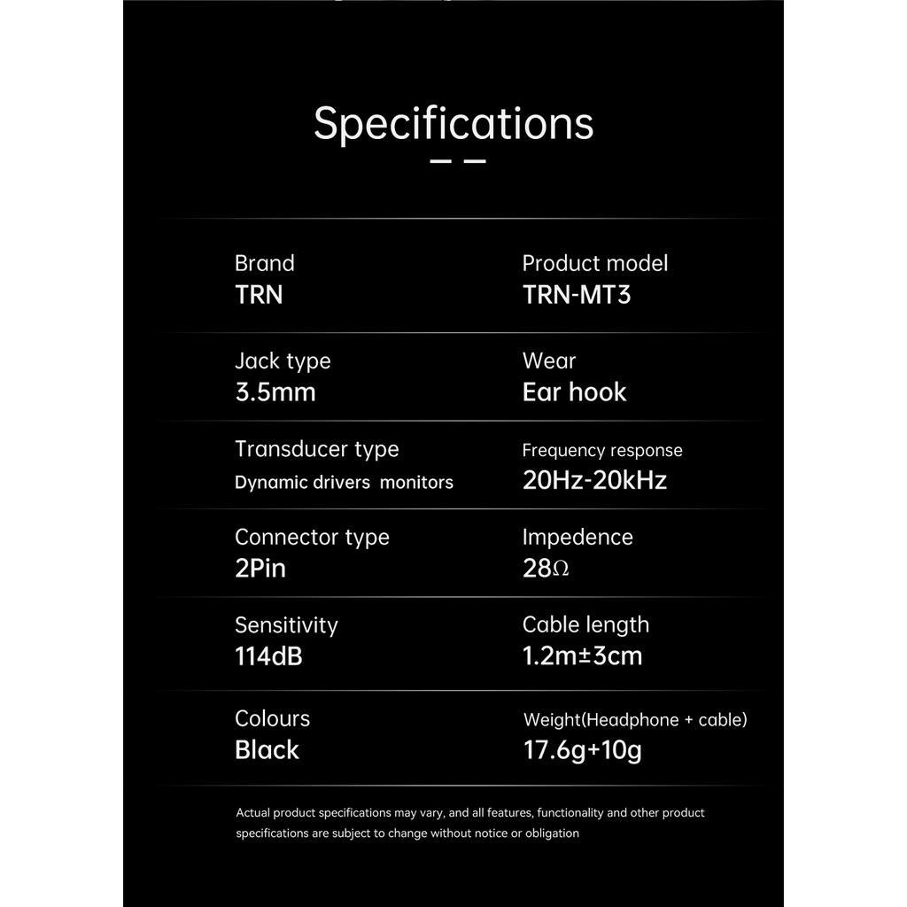 Look no further than the TRN MT3 In-Ear Earphones for an unbeatable blend of affordability and performance. Experience the magic of its clean midrange, precise vocals, and impactful low end, immersing yourself in a captivating audio journey. Boasting a robust zinc alloy construction, the MT3 stands tall among its price range, delivering unparalleled durability and style.
