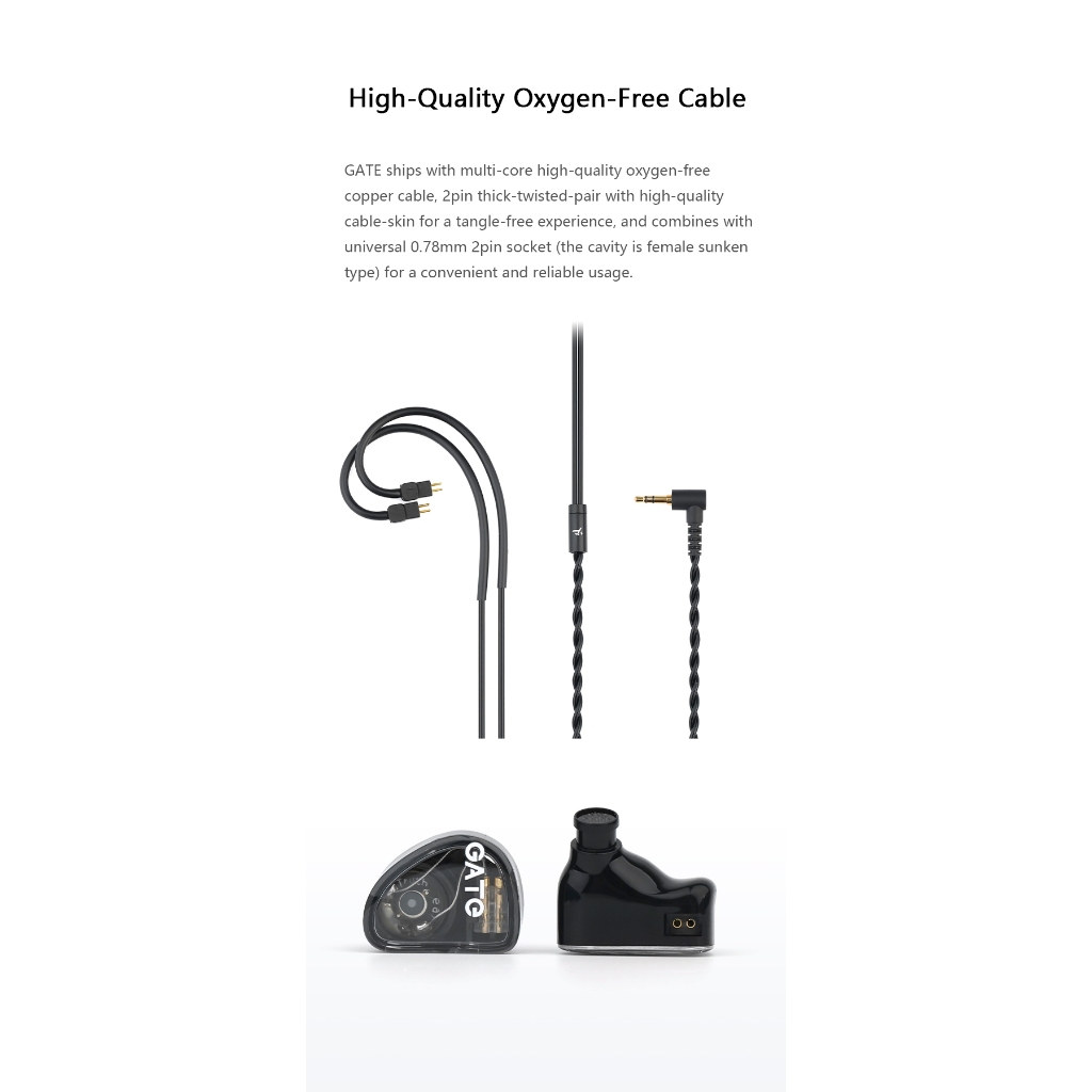 Equipped with a multi-core, high-quality oxygen-free copper cable, the Gate ensures reliable audio signal transmission. The 2pin thick-twisted-pair design prevents tangling and allows for easy replacements and upgrades.