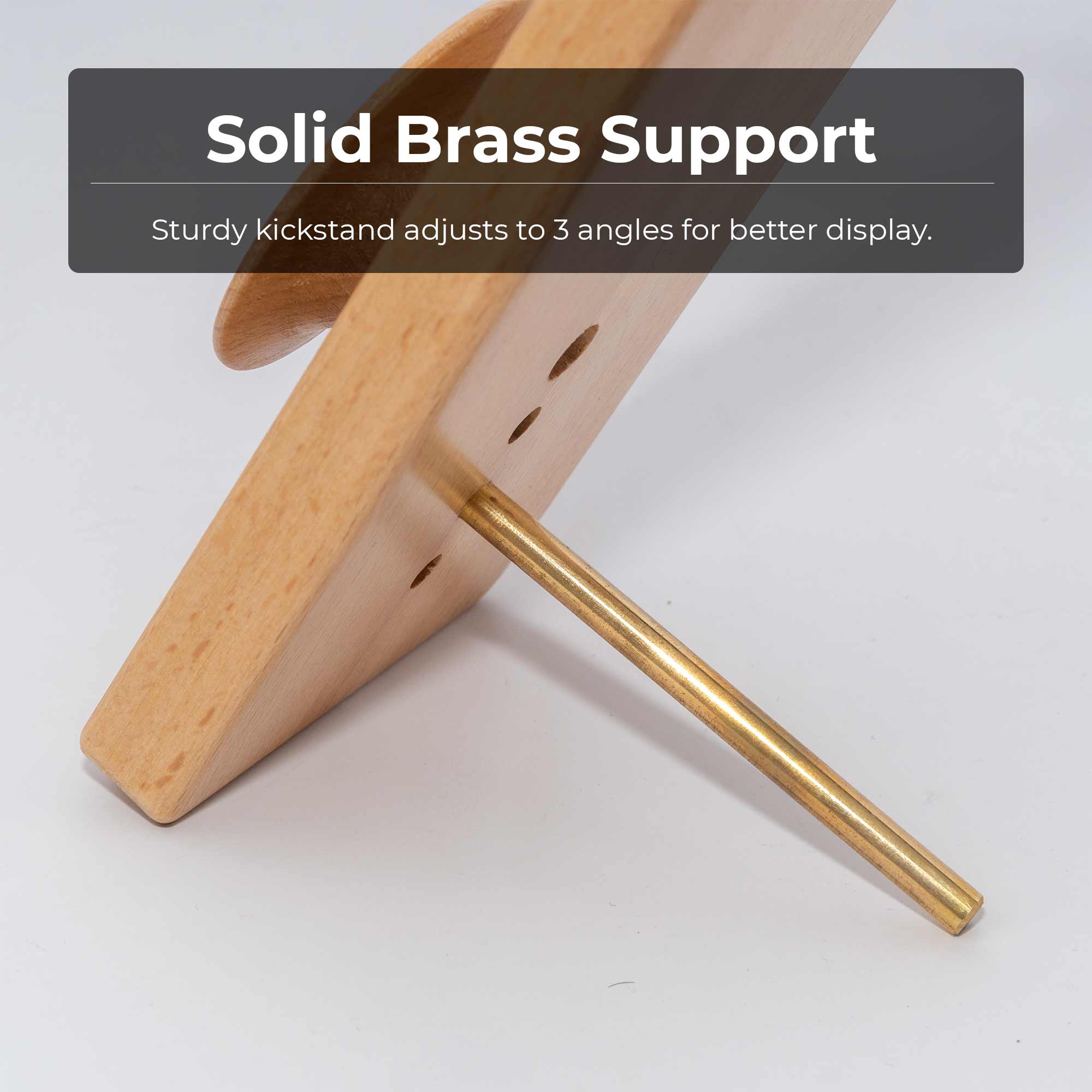• ADJUSTABLE BRASS STAND – The back kickstand is made of real brass and adjusts to three angles. Choose the perfect tilt for your space.